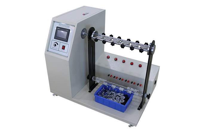 本機專門測試插頭引出線及電線之耐折強度,能自動計數,方法是將試料固定在夾具上,并加一定荷重,試驗時夾具左右擺動,經一定次數后,檢視其斷線率;或至無法通電時,查看其總計擺動次數。本機能自動計數,試料彎折至斷線無法通電時,并能自動停止操作。